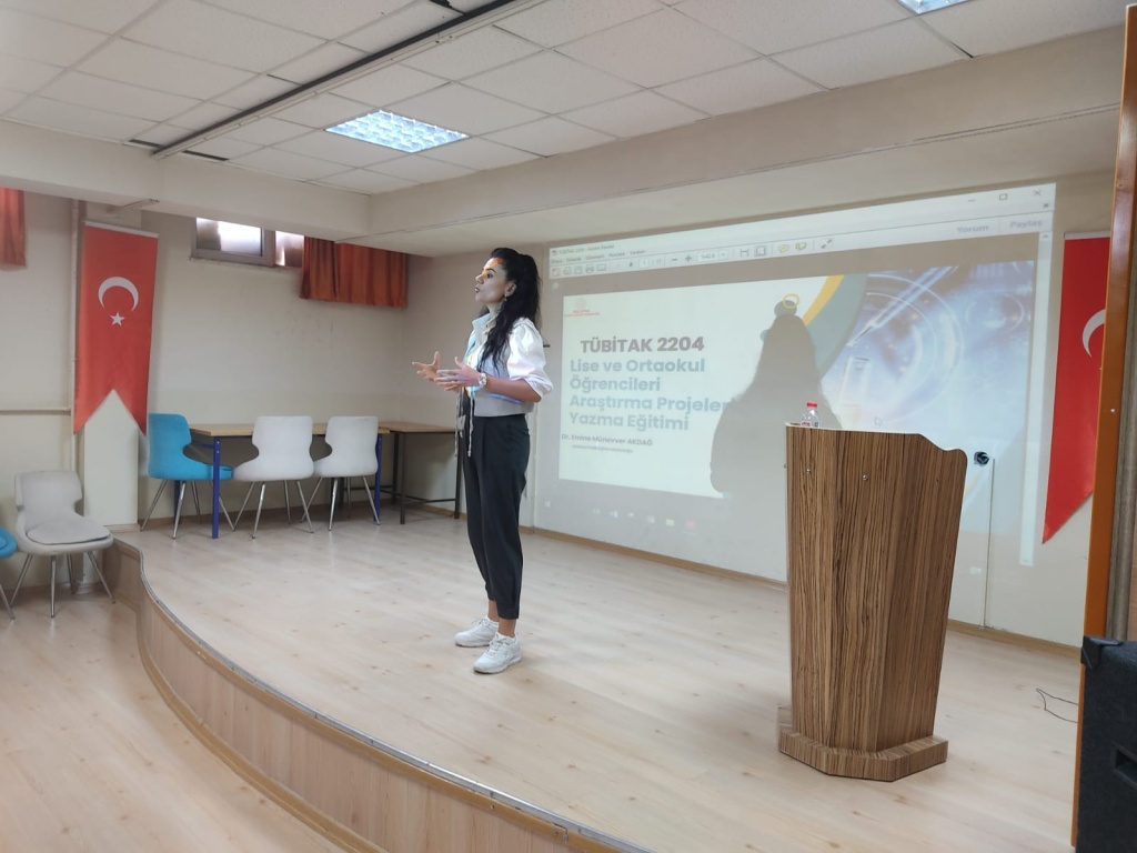 Dr. Emine Münevver AKDAĞ tarafından okulumuz öğretmenlerine "Tübitak Projeleri Eğitim Semineri" verildi.