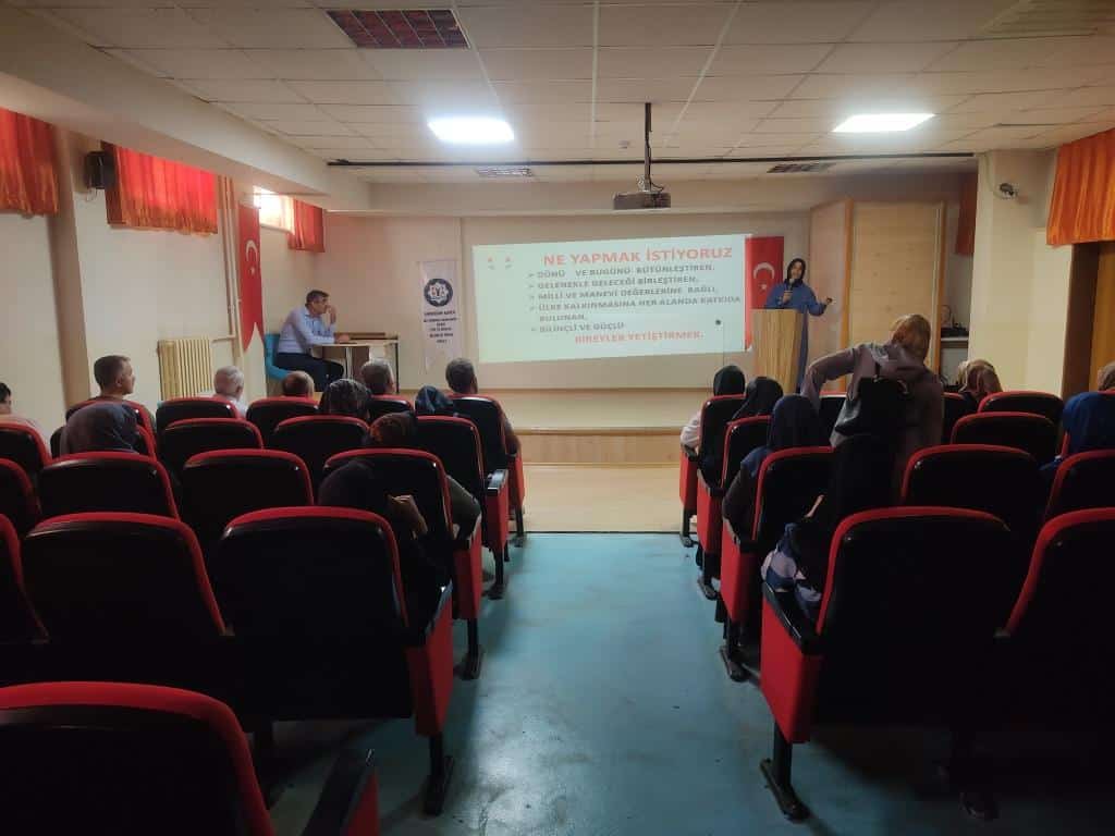 9.sınıf öğrencilerimizin velileri ile Okul müdürümüz başkanlığında bir tanışma toplantısı düzenlendi. Toplantıda okulumuzun vizyon ve misyonu hakkında bilgi verildi.
