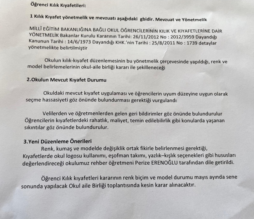 Milli Eğitim Bakanlığı Kılık Kıyafet Yönetmeliğini okumak için tıklayınız.